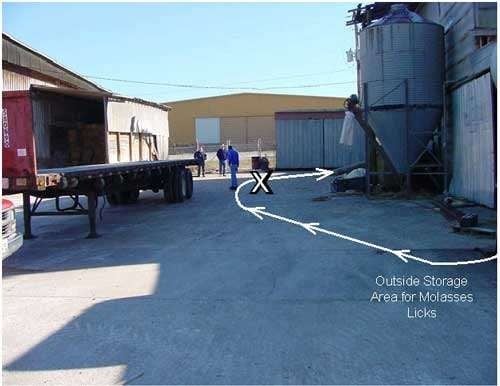 El incidente ocurrió en una cooperativa agrícola. La tienda de la cooperativa estaba conectada a la tienda de neumáticos de la cooperativa y a un depósito. Además, en el terreno había un cobertizo de almacenamiento de equipos, un cobertizo de fertilizantes, y un área de almacenamiento al aire libre donde se almacenaban lameduras de animales de 200 libras de melaza. Un gran aparcamiento plano de hormigón se extendía delante de la entrada de la tienda y alrededor de un lado del depósito donde se encontraba un muelle de carga y una rampa – Foto 1.