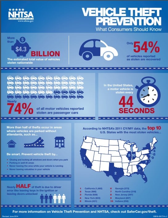 Facts and figures of vehicle theft in the US.