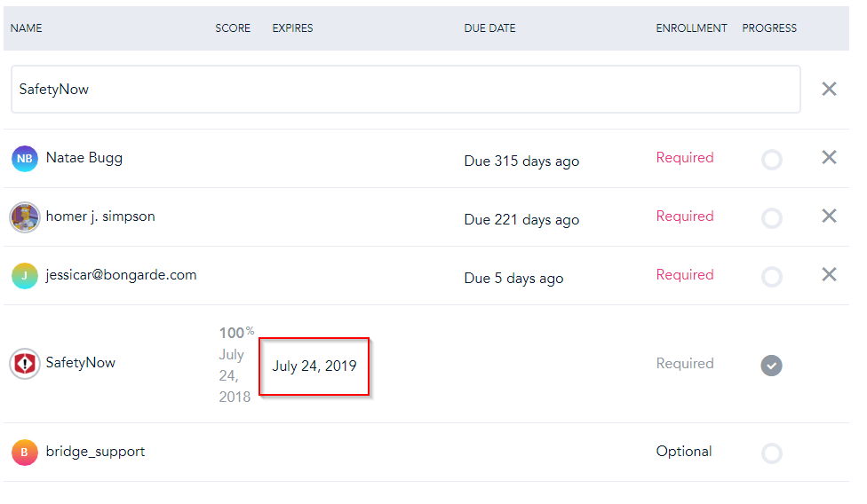 In the screenshot above, you can see that the SafetyNow account passed the course with 100% on the quizzes. You can change this simply by clicking the score and typing in a new number. It’s as simple as that!