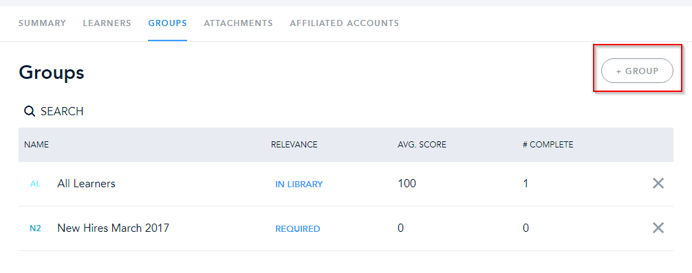 Courses can be assigned individually, or they can be assigned to groups of people. Assigning courses to a group can be incredibly useful in building a curriculum. When you assign a course to a group, that assignment will “stick” and anyone added to the group will automatically get the course. This can be used to create a curriculum for different groups without having to assign the courses to each individual.