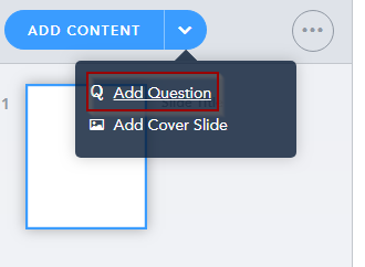 Alright, let’s get into the process of making a quiz. First, click the arrow to the right of Add Content, and click Add Question: