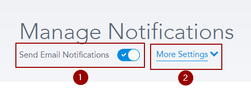 Send Email Notifications [1] will allow you to turn on or off all emails that SafetyNow sends out. Clicking on More Settings [2] will allow you to change where the emails come from and who your learners will reply to: