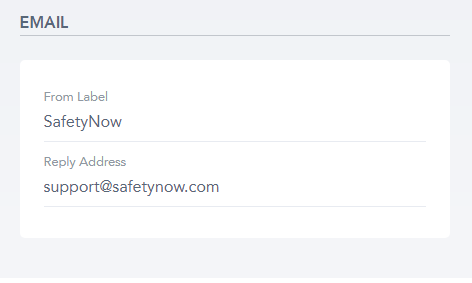The From Label can be anything, like a name, company name, etc. The Reply Address has to be a valid email address – anyone who replies to an automated SafetyNow email will send their reply to that address.